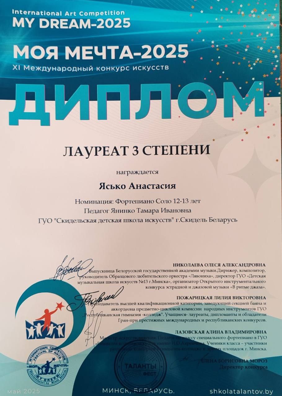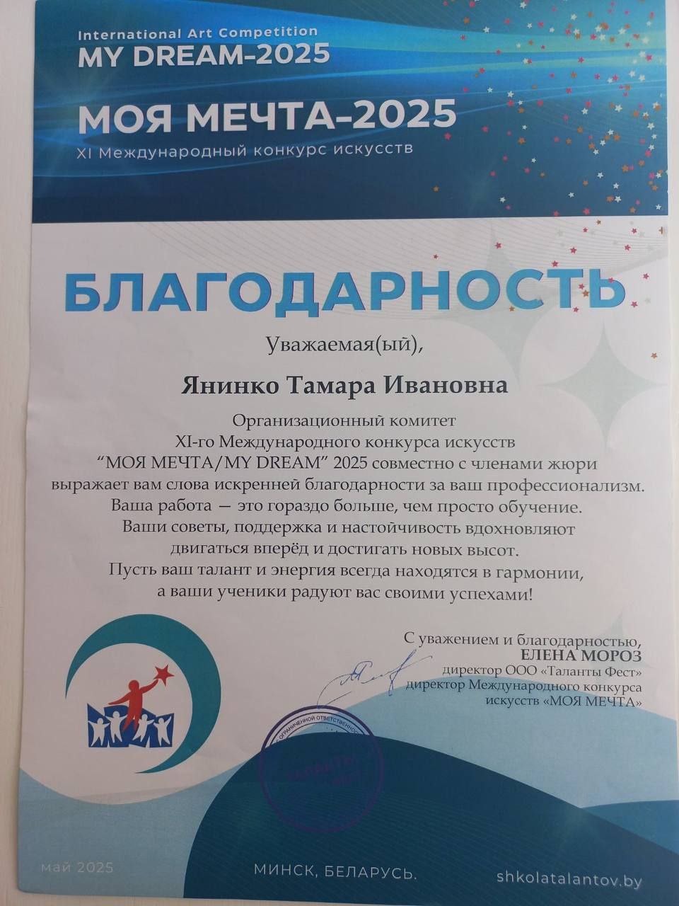 18 мая в г. Минске прошёл XI Международный конкурс искусств «Моя мечта-2025».