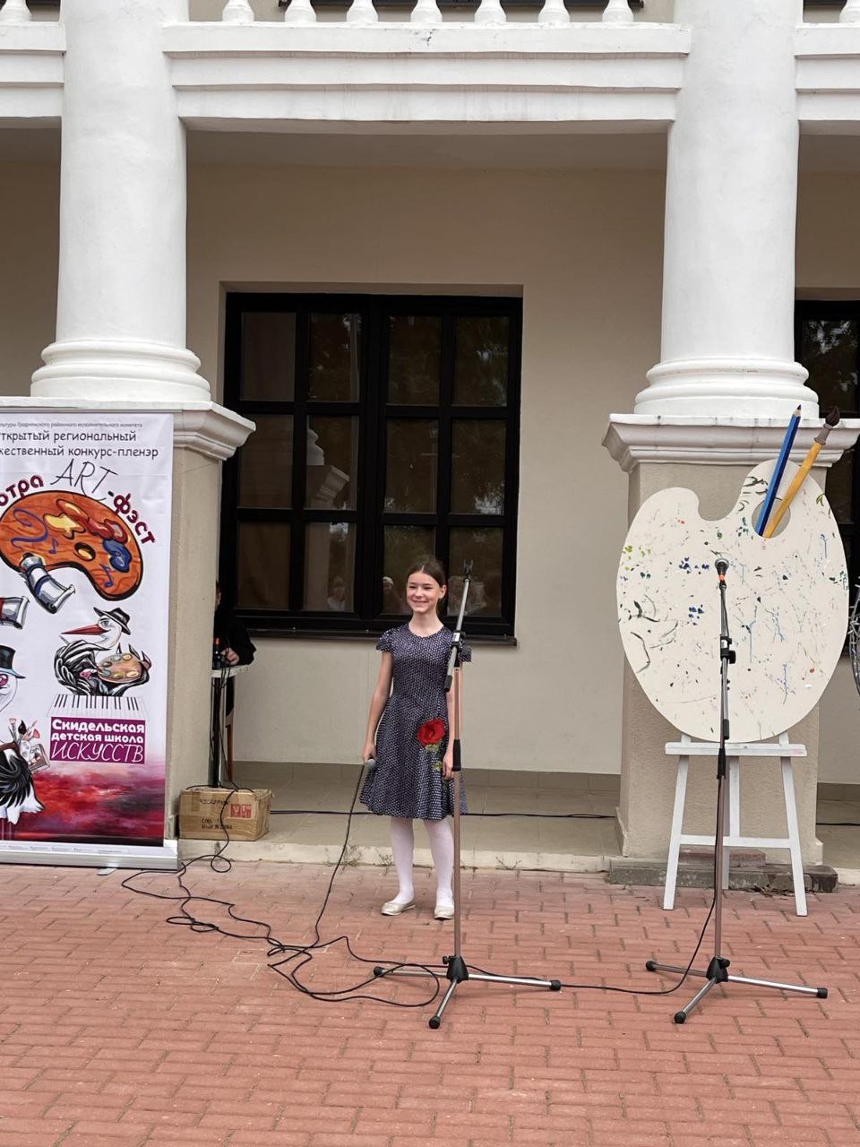 Обладатель Гран-При нашего конкурса - пленэра и сертификата на 100 рублей в сеть магазинов "Арт-территория" - участница старшей группы Красносельской ДШИ Злата САДОВСКАЯ. Учитель Людмила Владимировна КАВЕРСКАЯ. Поздравляем!