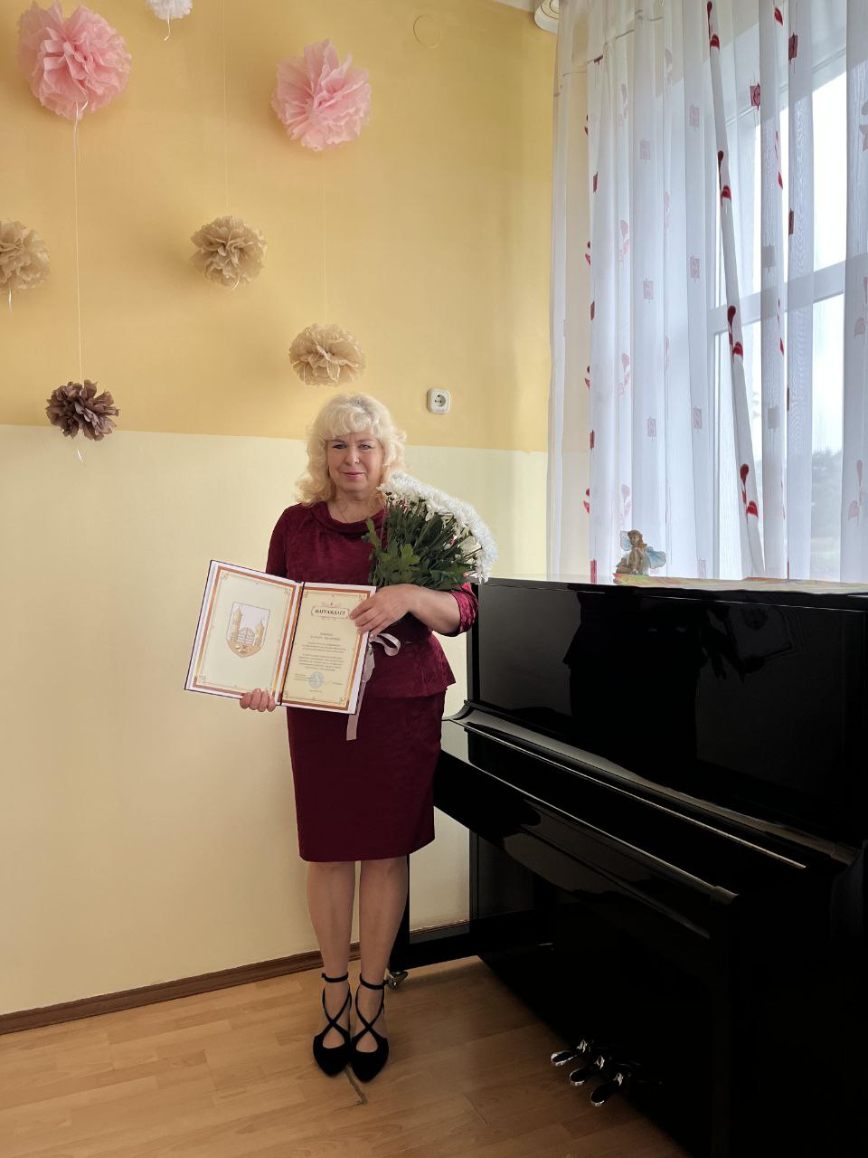 26 августа на педагогическом совете коллектив школы поздравил с Почётным Юбилеем заведующего фортепианным отделением Тамару Ивановну ЯНИНКО. Тамара Ивановна - выпускница нашей школы и педагог с многолетним стажем. Коллеги выразили слова искреннего восхищения, уважения и благодарности Тамаре Ивановне за её добросовестное отношение к работе, верность выбранной профессии, успешность, результативность, мудрость, заслуги и опыт, а также прозвучало много тёплых и искренних слов наилучших пожеланий. Директор школы Валентина Фоминична ПОЛТАВЕЦ вручила Тамаре Ивановне Почетную Грамоту от Скидельского городского исполнительного комитета, а также премии от отраслевого районного профсоюзного комитета и из материального фонда школы.